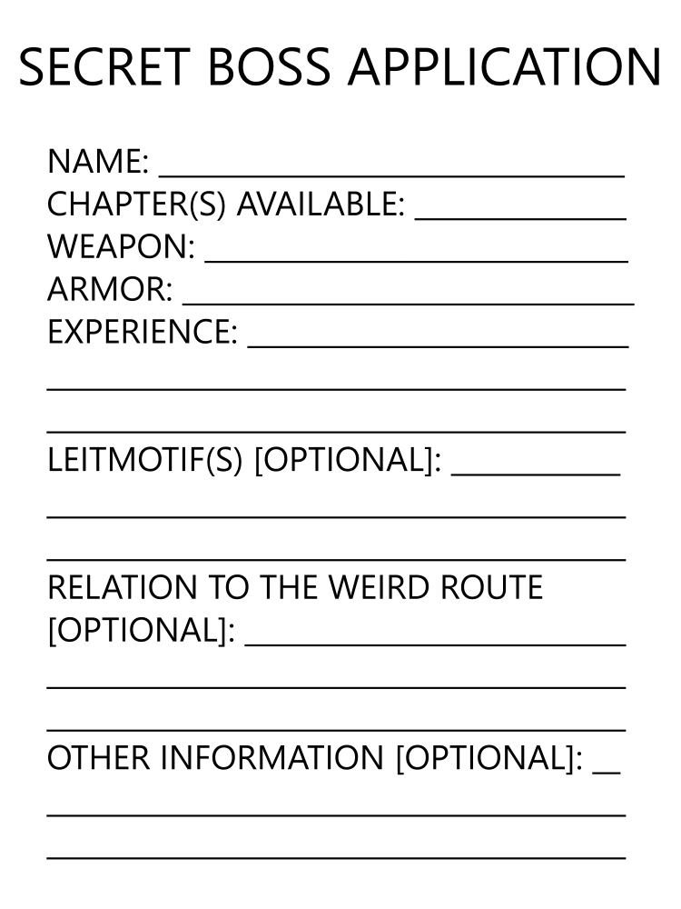 If you wish to become a secret boss, download this form, fill it out, then comment it on this post.